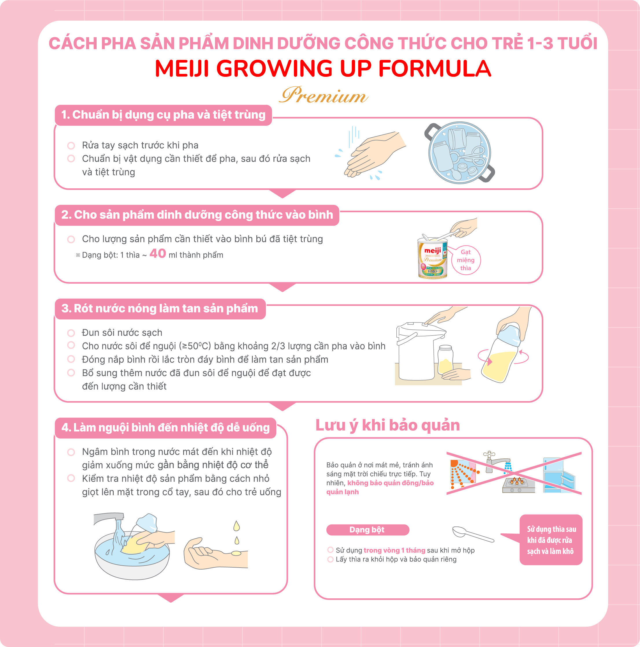 hướng dẫn. Cho trẻ ăn bằng cốc, thìa hợp vệ sinh.
